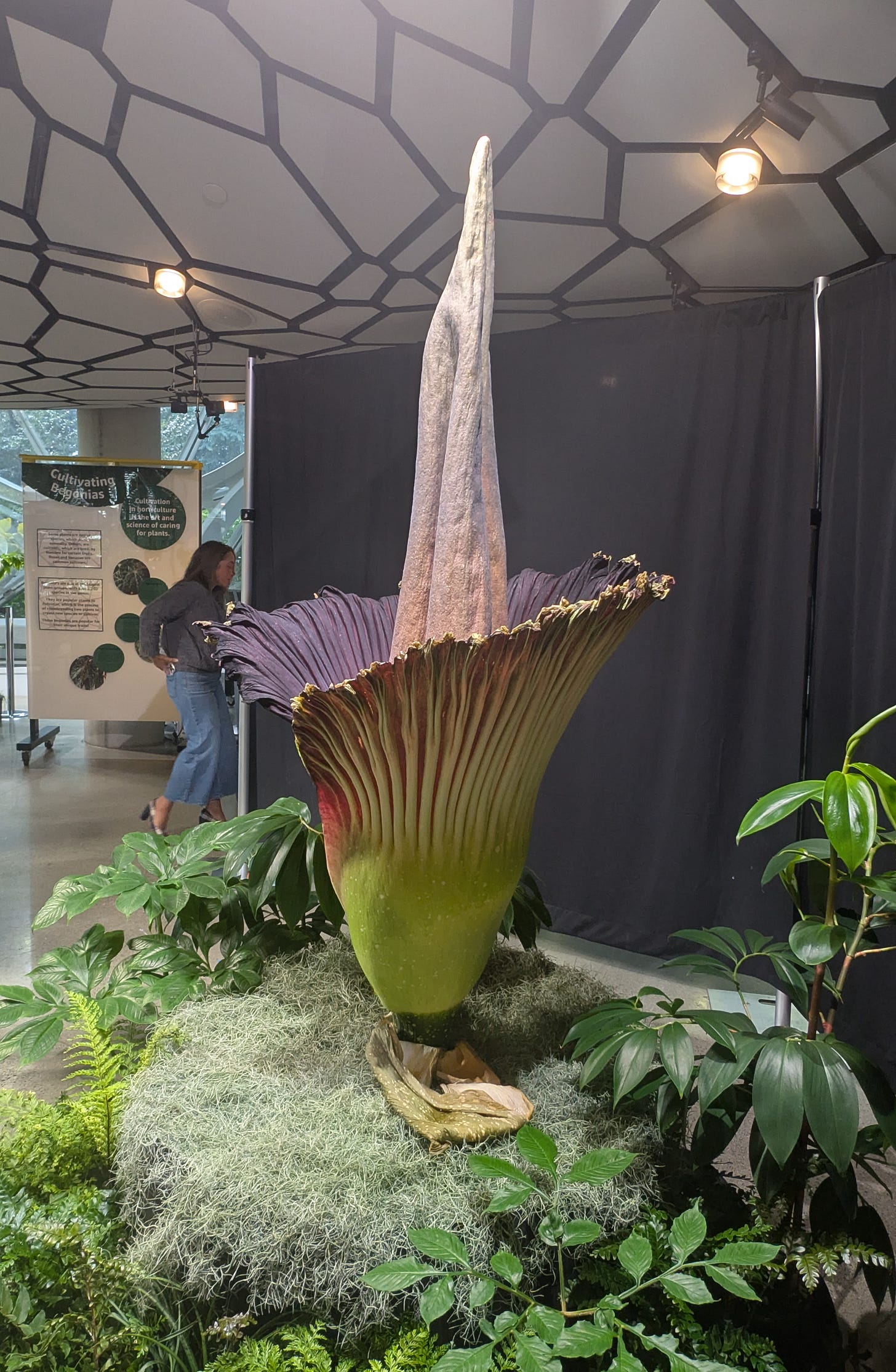 The reason for it’s name is because when it blooms it smells like rotting flesh. The smell is strongest right after it blooms and I was arriving about 17 hours after that. It wasn’t as strong as I was hoping but I did get one good whiff of it. I don’t think rotting flesh would be the description I would use, but sweaty socks and onions was pretty close. Perhaps something along the lines of the Dorian fruit for those of you that are familiar with that.