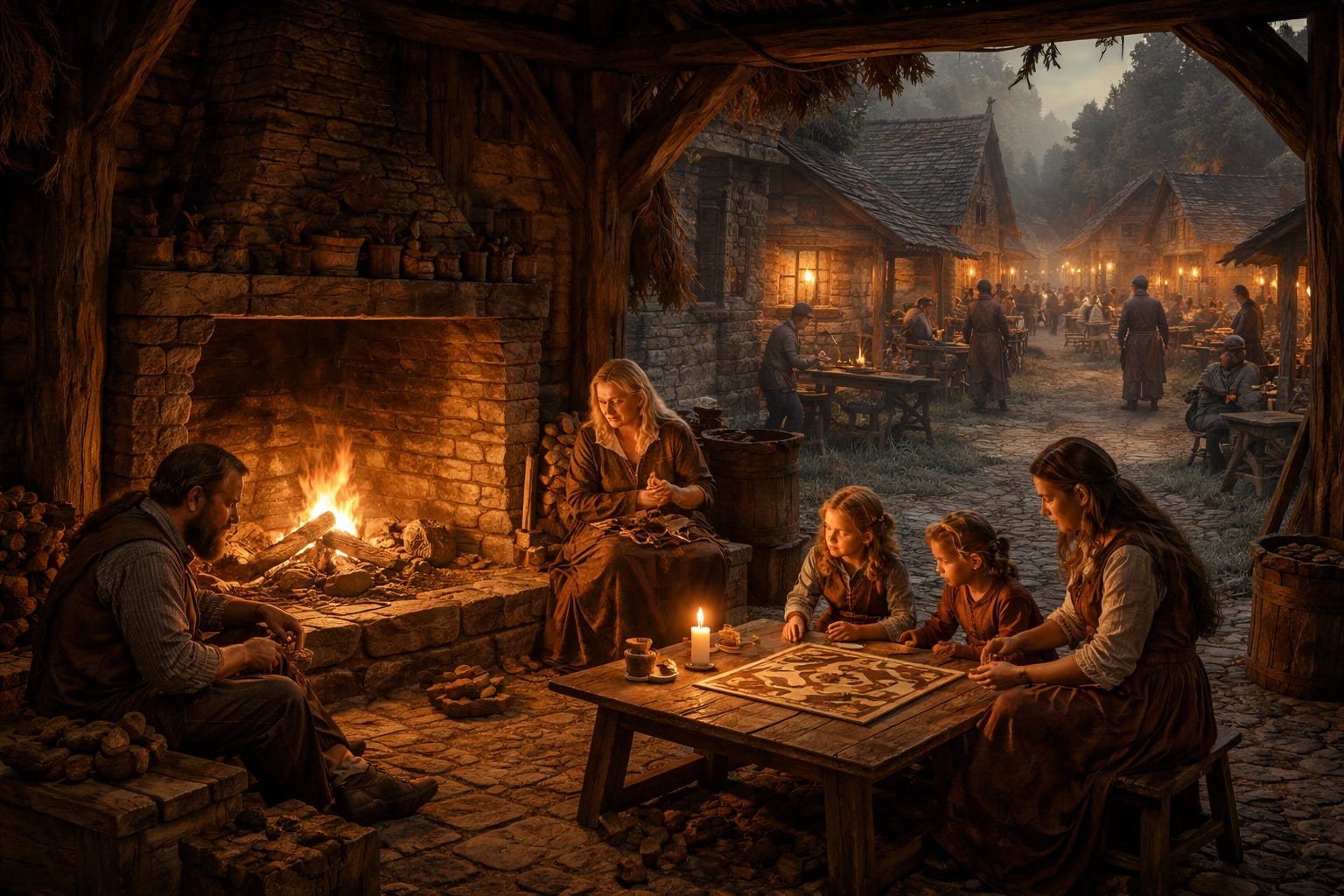 Literacy in Europe was 1%-5% so after work not a lot of people were reading books. Theaters became less common after the fall of the Roman Empire. So what did people do for fun? There were harvest festivals, weddings, bored games like chess and Nine men’s morris, a game which dates back to between 42 BC and 1400 BC. You can actually still buy it today on Amazon. Dice was also popular. Archery practice was common as hunting was very common at this time. There were entertainers who told stories and played music. Taverns, alehouses, mead halls and wine houses were common during this time as well.