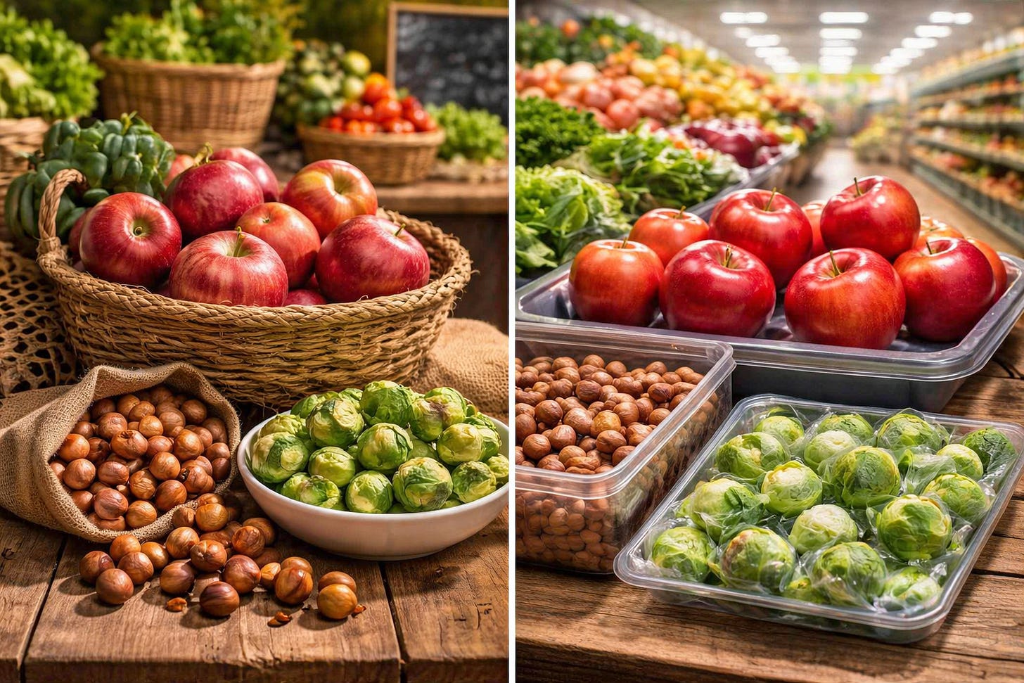 This got me wondering what is causing this bitter taste I keep tasting in the super market produce? Turns out supermarket fruits are usually picked earlier to account for shipping. Apples continue converting starch to sugar only for a week to a few weeks. I was shocked to learn it can take an apple one to fourteen months from being picked going on salt at the grocery store. It can be six to eight weeks for brussels sprouts.