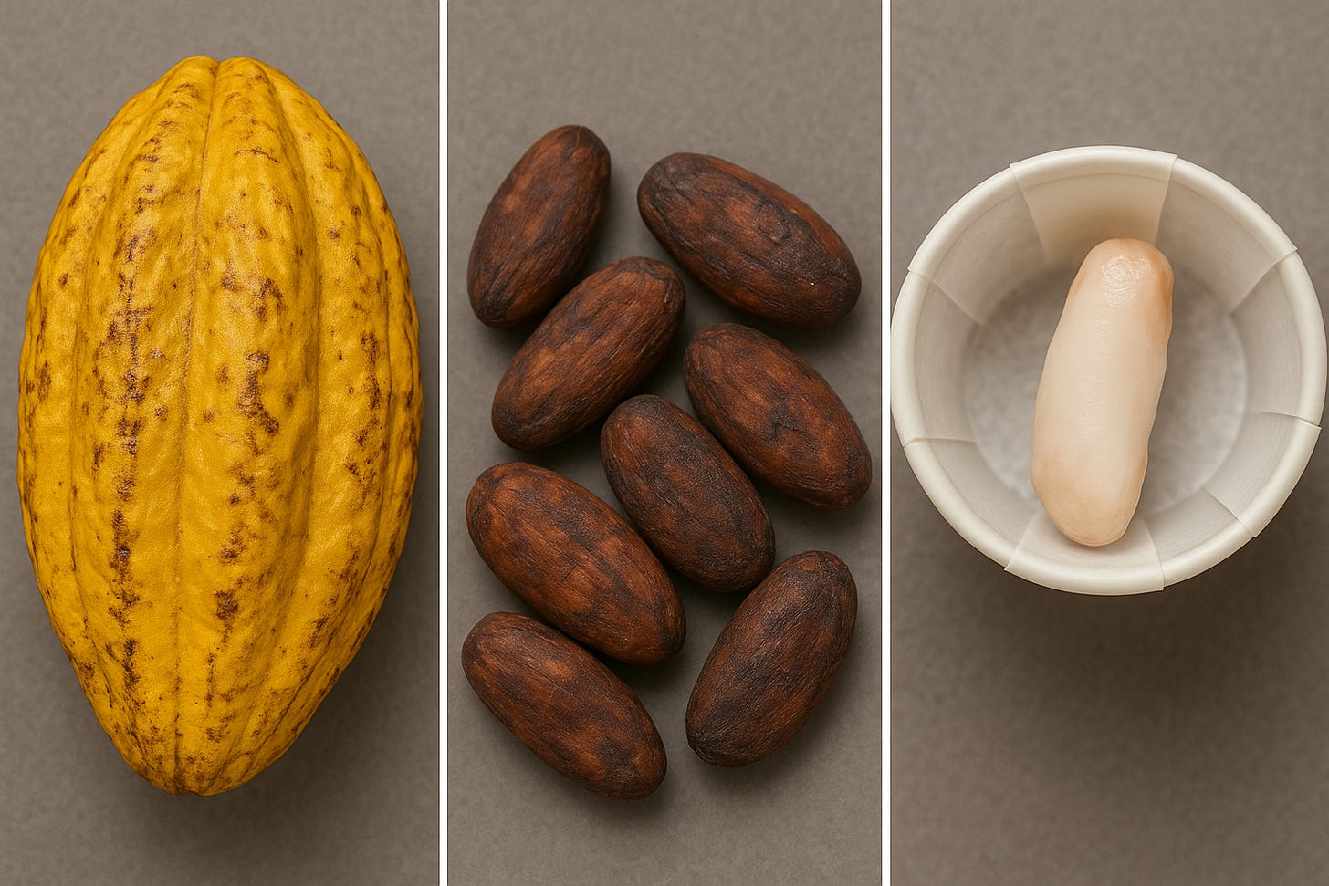 The fruits are harvested and inside of those fruits are little pods and inside of those pods are a single seed, about twice the size of an almond. Those seeds are what chocolate is actually made of. They are fermented for 5 to 7 days, and the laid out to dry for another week. During the week of drying many small villages are putting them anywhere they can find to dry them out, patios, streets, etc. Finally they are roasted, and just like coffee beans the more roasted the more bitter the flavor will get.